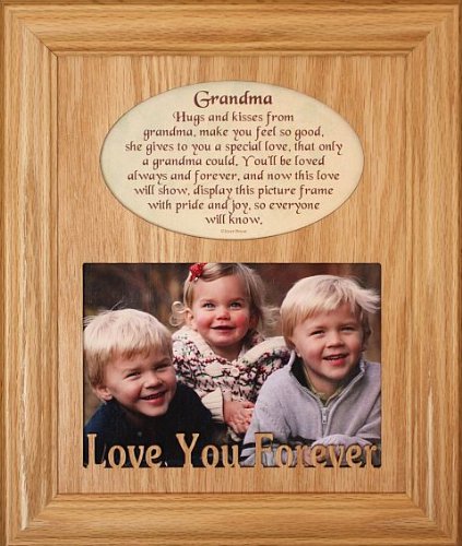 -. Feature : 8x10 Solid Oak Frame with Light/Medium Stain. Sanded and Fine Finished. / Holds a 5x7 Landscape Picture/Photo and Grandma P with Laser cut text Love You Forever / E-Z Bendable tabs for simple access to photo. Ready to Hang or for Desktop/Mantel Easel Display. / Wonderful Keepsake Picture Frame for Grandma from Grandchild/Grandchildren/Grandkids.