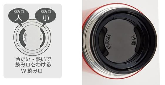 | 冷たい・熱いで飲み口が分けられるダブル飲み口でオールシーズン使えます♪ |