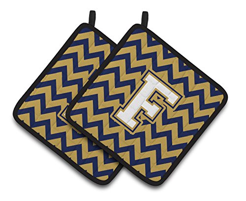 Caroline's Treasures Letter F Chevron Navy Blue & Gold Pair of Pot Holders CJ1057-FPTHD, 7.5HX7.5W, Multicolor