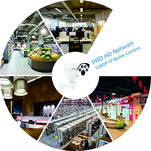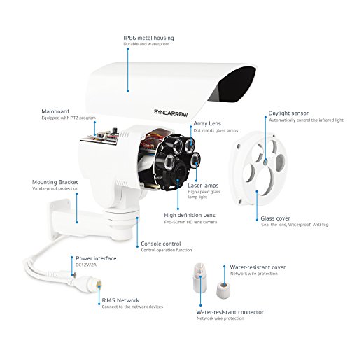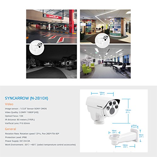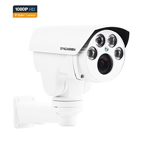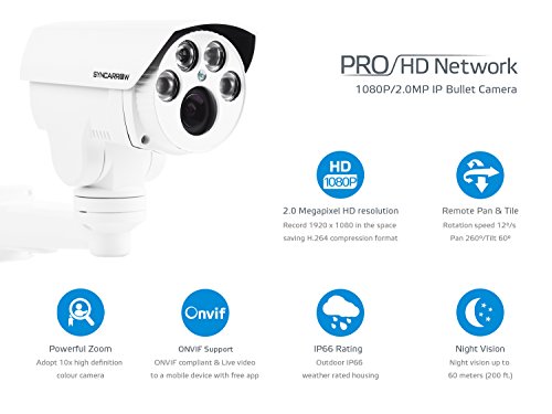 SyncArrow Network 2.0 Megapixel 1080P HD, 10x Optical Zoom, 10x Digital Zoom, 12 Deg/s Low Speed PTZ, 200ft (60M) IR Distance, IP66 Weatherproof Outdoor Security IP Bullet Camera ONVIF (N-2B10X)