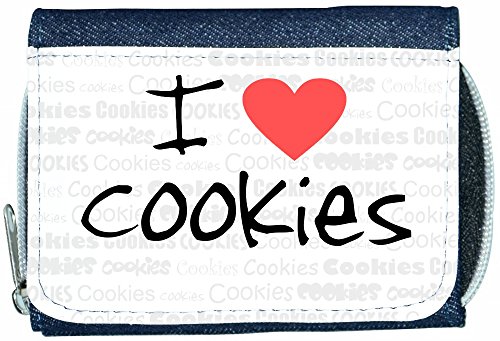 Binding : Apparel Product Description High quality wallet - I Love Heart Cookies Denim Wallet. Denim back, printed front flap. Full zip opens on divided area for two coin sections. Flap area over 4/5 credit card sections, clear photograph/ID section and large note section. 0