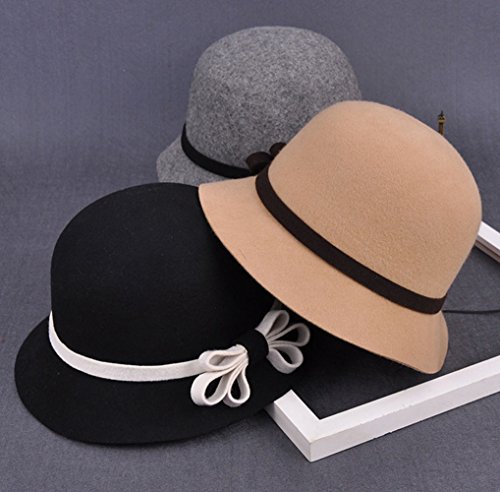 (YSJOY Accessory)/Accessories/Hats/DIRECT FROM USA/YSJOY Elegant Bowknot Two Tone 100% Wool Dome Basin Hat Fisherman Hat