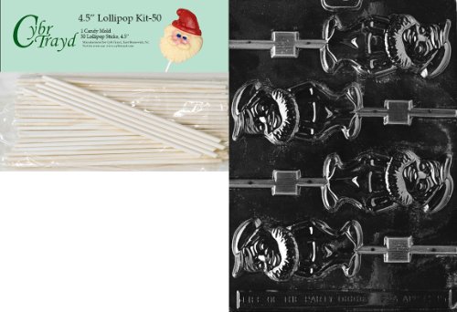 Cybrtrayd 00045St50-C095 Elf Lolly Christmas Chocolate/Candy Mold with 50 4.5-Inch Lollipop Sticks