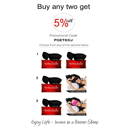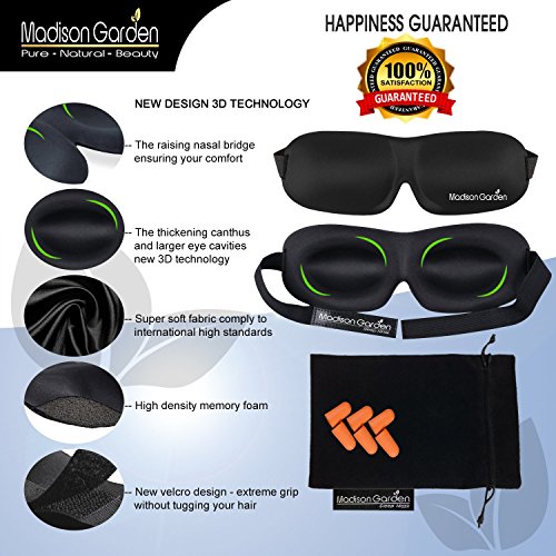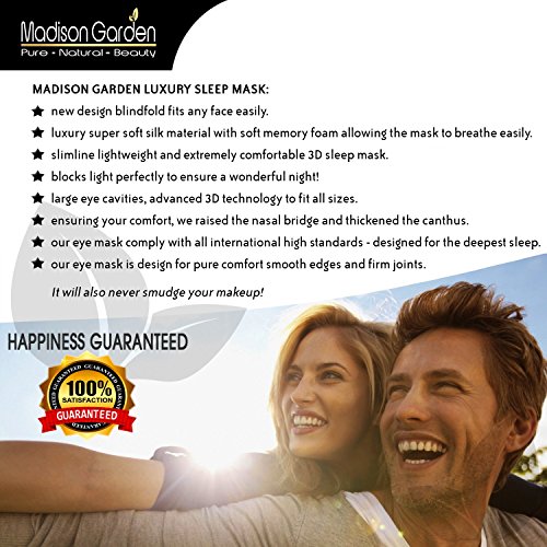 -. Feature : ★ LUXURY SLEEP MASK: New Advanced 3D Technology design with deeper and large eye cavities - contoured design & adjustable strap for comfort - luxury super soft silk material - It will also never smudge your makeup! / ★ ULTIMATE RELAXATION: Our 3D eye shades are designed for the deepest sleep, we raised the nasal bridge and thickened the canthus with soft memory foam allowing the mask to breathe easily. / ★ EXTREME COMFORT: The Madison Garden blindfold fits any face easily. The new velcro design seals well without ting your hair. Enjoy Anywhere, Anytime ensuring your comfort. / ★ SUPER QUALITY: Our eye mask comply with all international high standards - design for pure comfort, smooth edges and firm joints for the deepest sleep. / ★ BLOCKS LIGHT PERFECTLY: To ensure a wonderful night! - slimline lightweight and extremely comfortable 3D sleep mask - use for traveling, meditation, shift work, daytime napping, and as insomnia aid for your best rest.