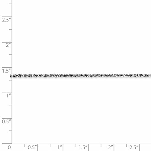 10k White Gold 1.5mm Machine Made Diamond Cut Rope Chain. Material: Primary - Purity:10K|Plating:Rhodium|Chain Length:9 in|Chain Type:Rope|Chain Width:1.5 mm|Clasp /Connector:Lobster|Feature:Solid|Manufacturing Process:Die Struck|Material: Primary:Gold|Product Type:Jewelry|Jewelry Type:Anklets|Sold By Unit:Each|Anklet Type:Chain Styles|Texture:Diamond-cut|Material: Primary - Color:White|Manufacturing Process 2:ExtrudedFeature