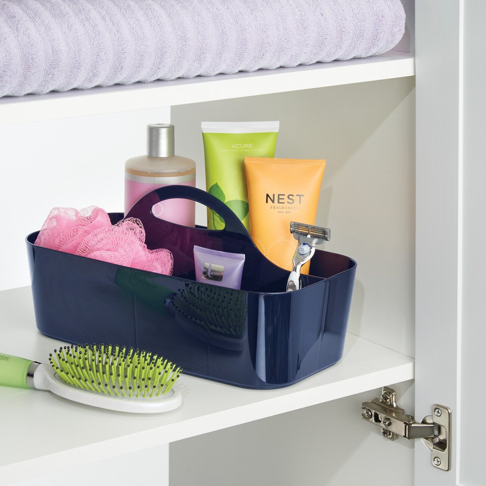 The InterDesign shower tote bag has 6 masters, convenient for storing essential items in the shower.