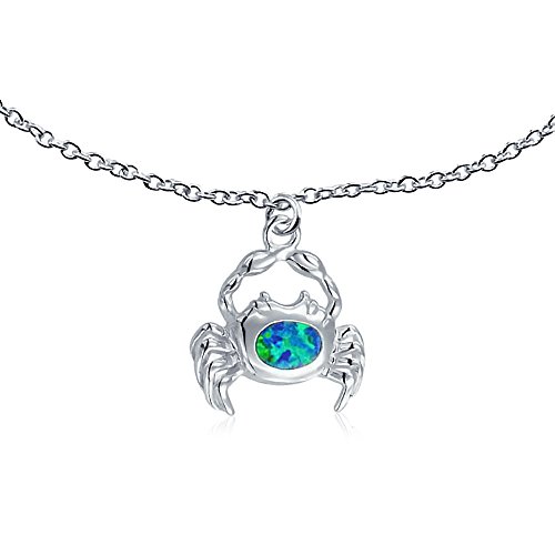 Make sure you have company all summer by keeping our cute and crabby anklet around your ankle. This shining sterling silver jewelry has a delicate rolo chain that lengthens up to 9 inches with its extender and comes together with an easy to use lobster clasp. The half inch charm that dangles down from our ankle bracelet is a detailed silver crab with a glittering Synthetic Opal in the middle that shows off a gorgeous range of blue and green shades. A sea creature style makes this piece the perfect animal jewelry to wear during those warmer months, and looks totally adorable with shorts and a tank or your favorite sundress. Its lightweight style means you can wear it and still have all your fun in the sun, so order this oh so cute Synthetic Opal bracelet today.Feature