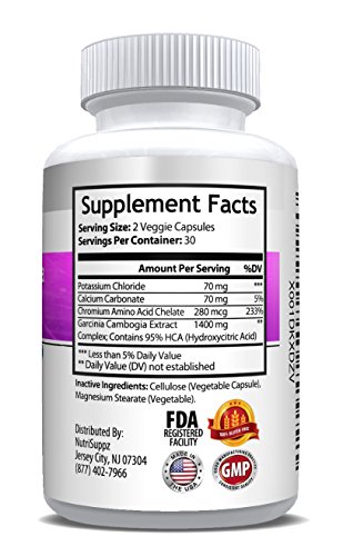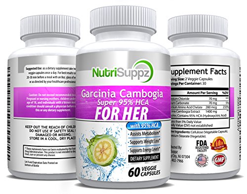 GARCINIA FOR HER - 100% Pure Garcinia Cambogia Extreme 95% HCA ULTRA COMPLEX 1400mg With Potassium, Calcium & Chromium - Supports...