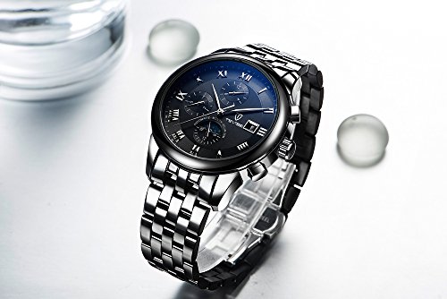 원본상품명:TEVISE 腕時計 メンズ アナログ ビジネス ステンレス ケ?ス バンド 多機 能 自動?き (ブラック*ブラック)