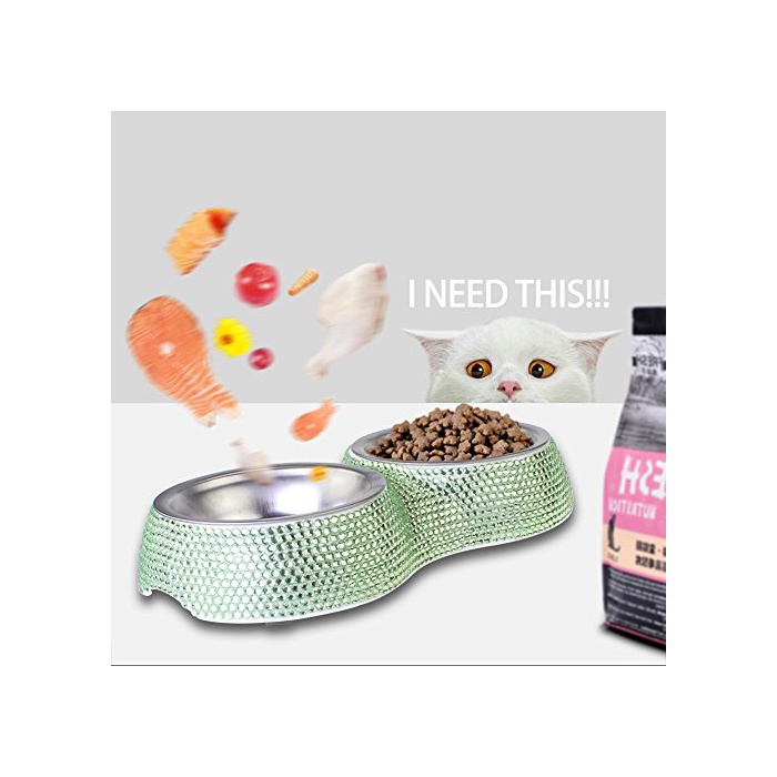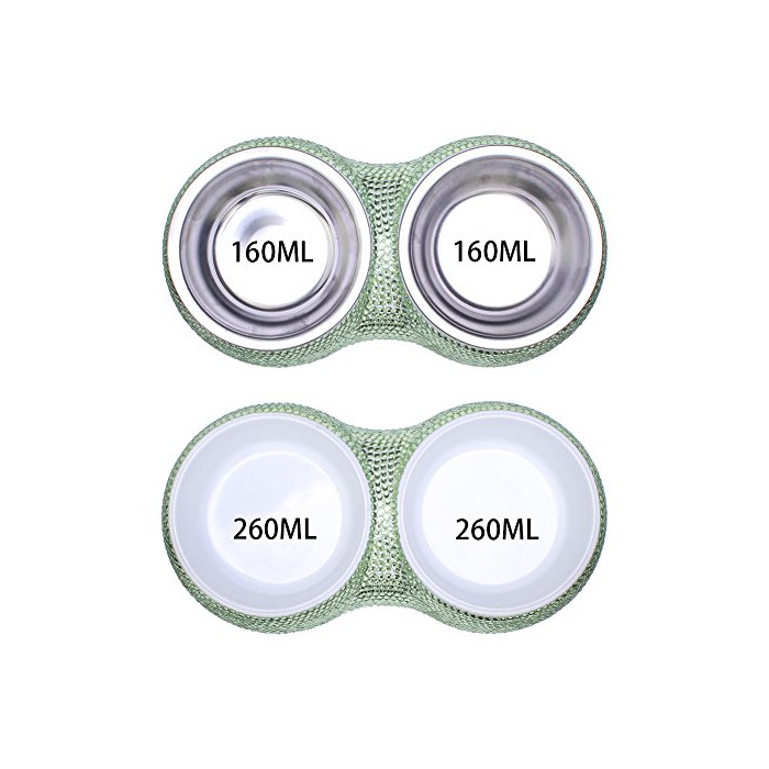 TASIRO 순수한 핸드 메이드 브리부린묘/개 식기 떼어 내어 씻을 수 있는 볼2개와 미끄럼방지 고무 부착 본체 더블 후드 볼 애완동물 볼(연두색)