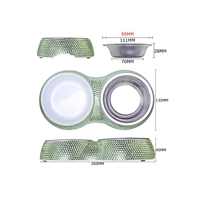 원본상품명:TASIRO 純?なハンドメイド ブリンブリン猫/犬食器 取り外して洗えるボウル2個と滑り止めゴム付き本? ダブルフ?ドボウル ペットボウル(薄?)