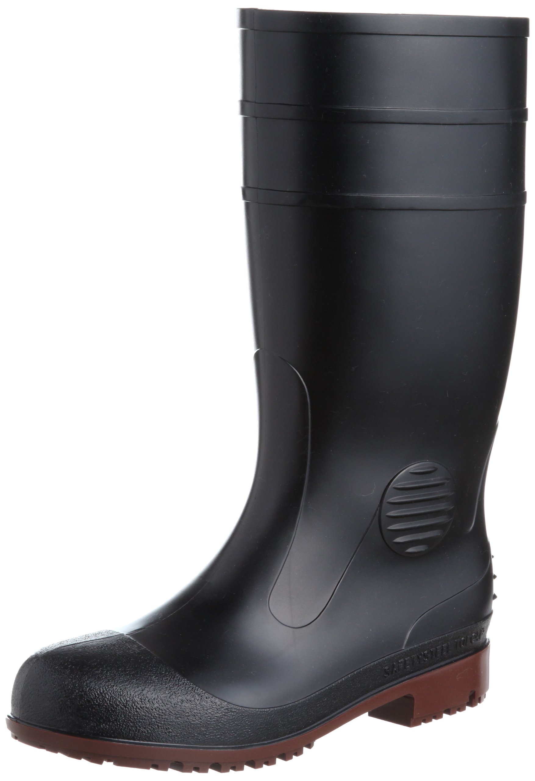 A boots with a steel core in front that protects the toes.