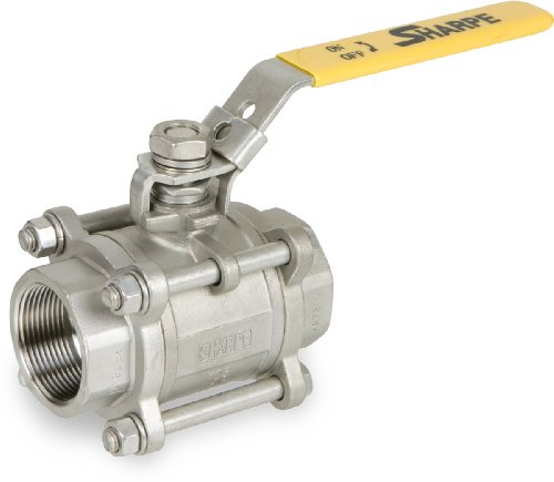 Sharpe Valves 39036 Series Stainless Steel 316 Ball Valve, Three Piece, Inline, Lockable Lever Handle, NPT Female