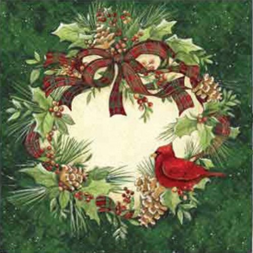 C.R. Gibson Decorated 3-Ply Paper Napkins, 5-Inch, 20-Pack, Cardinal Wreath