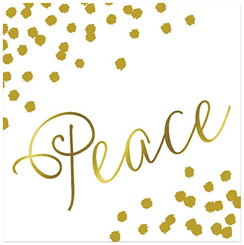 C.R. Gibson Peace 20 Count Beverage Napkins, Gold/White