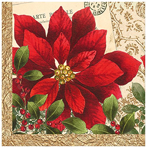 C.R. Gibson Vintage Poinsettia 20 Count Beverage Napkins, Multicolor