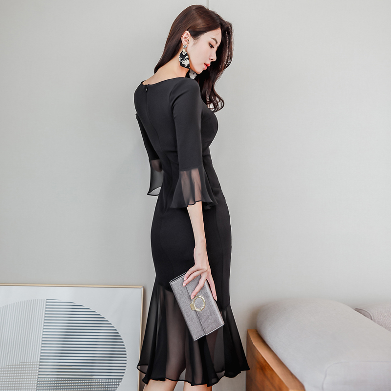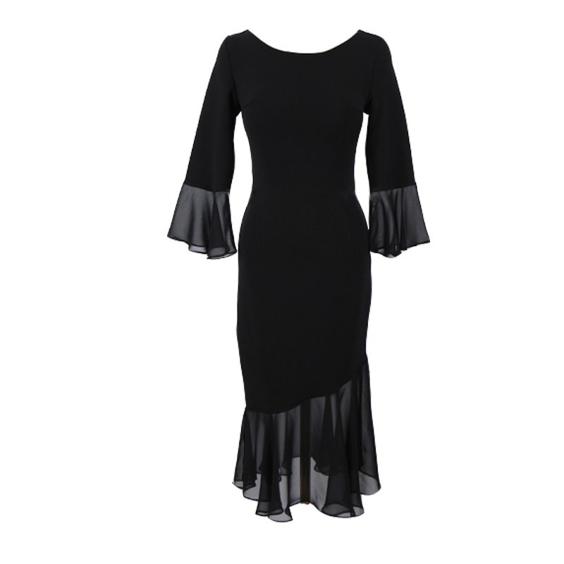 袖口と足元のフレアがシースルーで大人っぽさを演出。