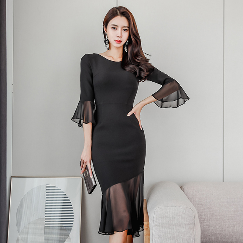 タイトワンピース ひざ丈 セクシー シースルー 上品 結婚式 二次会 お呼ばれ ドレス
