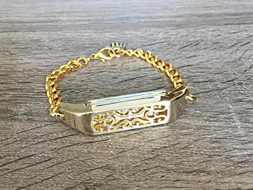 -. Title : Large Gold Metal Bracelet For Fitbit Flex 2 Fitness Tracker Handmade Accessory Wrist Chain Band Adjustable Size 7” - 8”