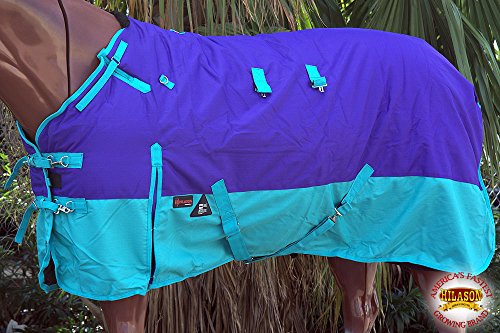 These Hilason Brand Sheets are the perfect companion for your horse in cold and wet weather. Only the best materials are carefully sourced from around the world that is tailor made according to strict specifications which are based on customer needs and feedbacks. The Sheets are Built on Heavyweight Toughmaster Brand 1200-Denier Rip-stop outer shell. ToughMaster is the one of the Best brands that makes top quality fabrics for the horse blanket industry. They are Ripstop, waterproof and breathable. These features are not just mentioned for fun but are lab tested to withstand over 10,000 PSI of air and water pressure, something even top brands are not able to withstand. The lining is made of a highly Durable Persian Twisted Woven Tafeta Lining that will withstand the wear and tear of daily use. The double-stitched, taped and reinforced seems gives the blanket that extra strength and durability you would rarely find in most of our competitors.It has insulated tail flaps and to maintain the temperature and prevent cold air entry. Some of the other unique features of this blanket is the Low Cross Sursingle, Shoulder Gussets for easy movement, fleece at withers to prevent rubbing, double-buckle front closure, removable elastic leg straps and Dees on both side for easy attachment of hood or neck covers. 0 |