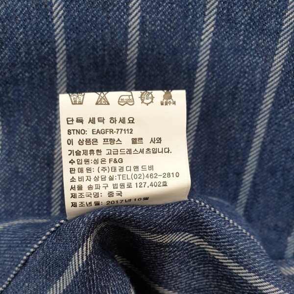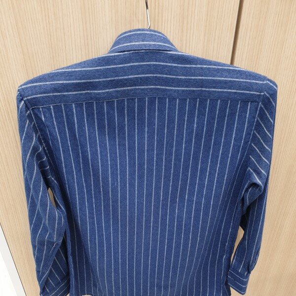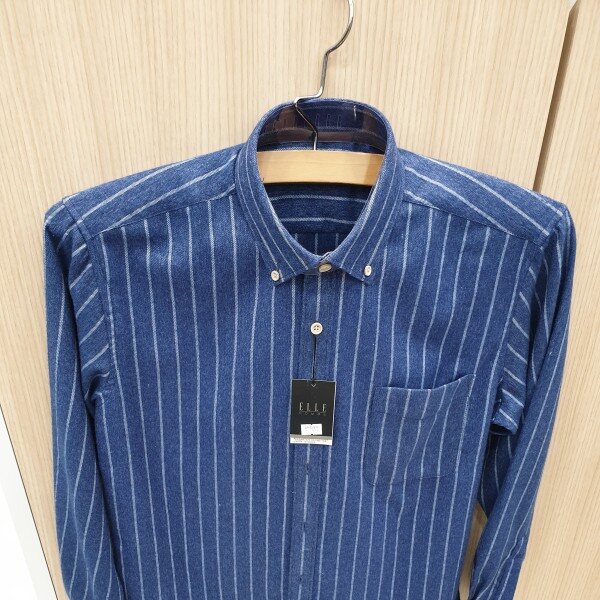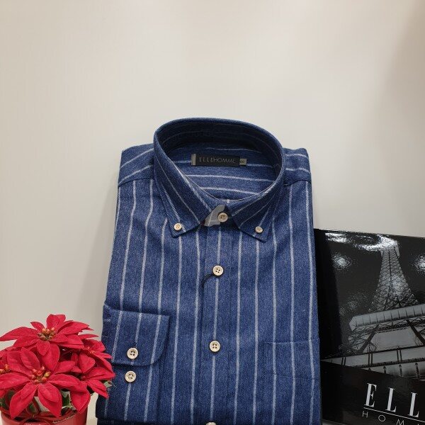 블루 바탕에 스트라이프 패턴카라 버튼다운