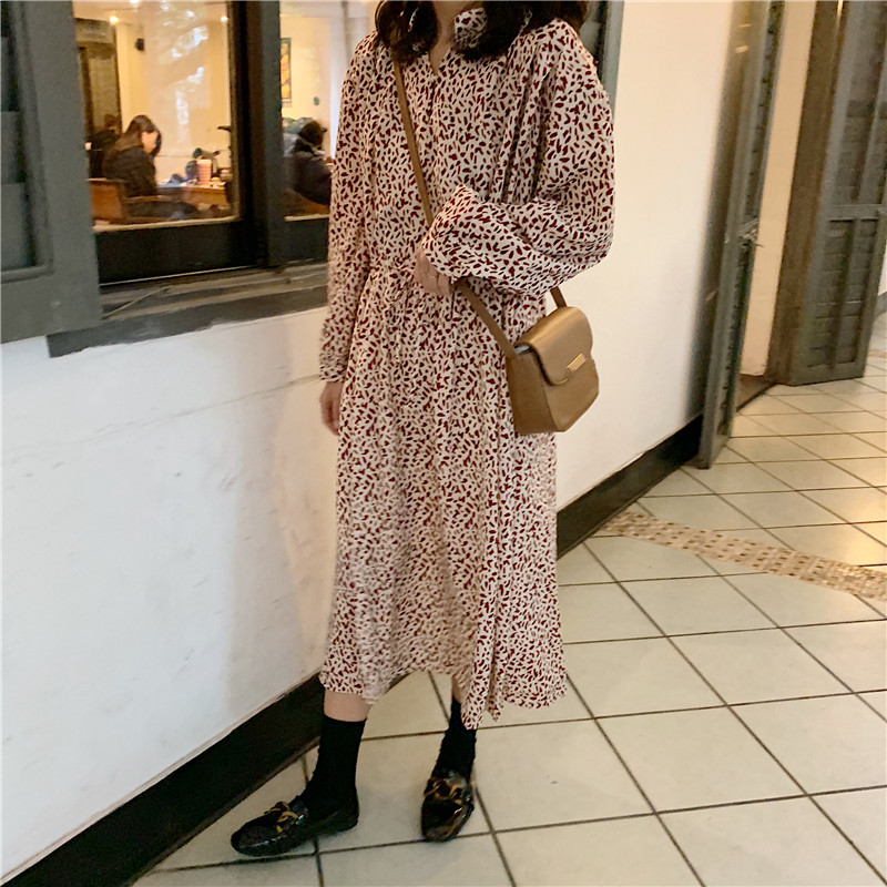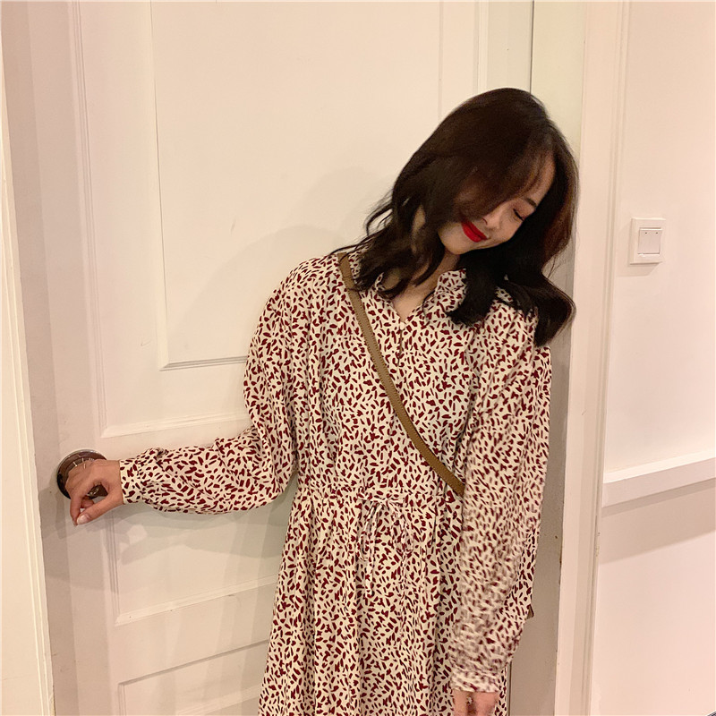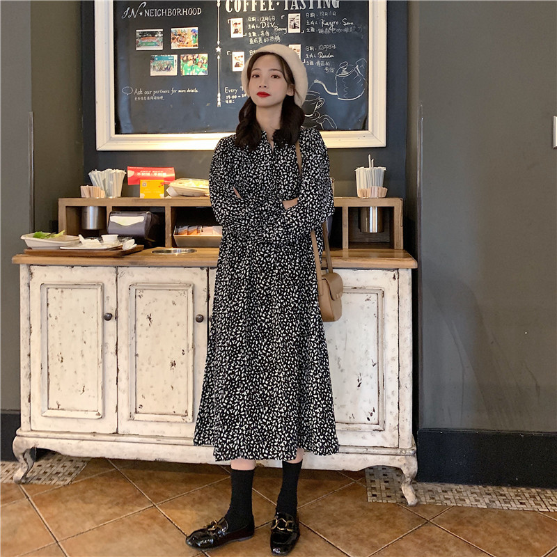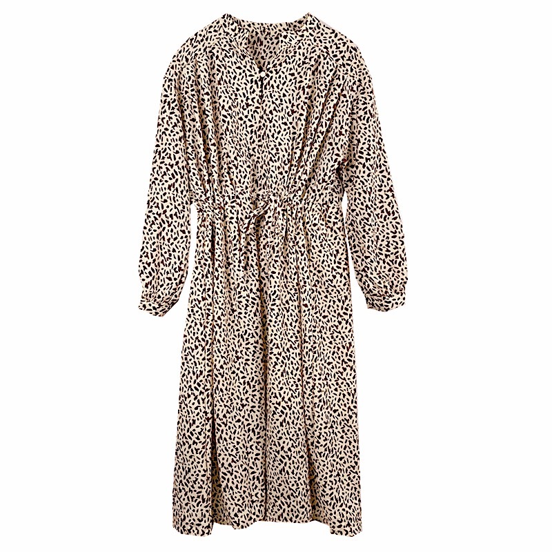 ンピース 長袖 ミモレ丈 キュート ゆったり デート ナチュラル服 アニマル柄