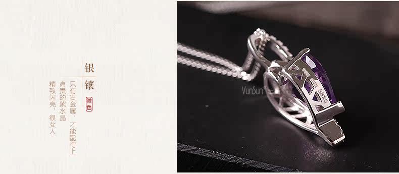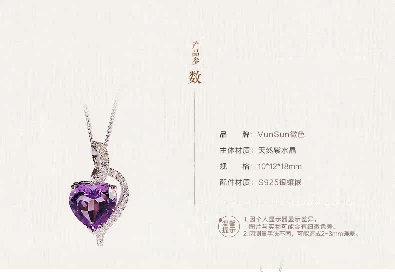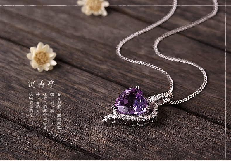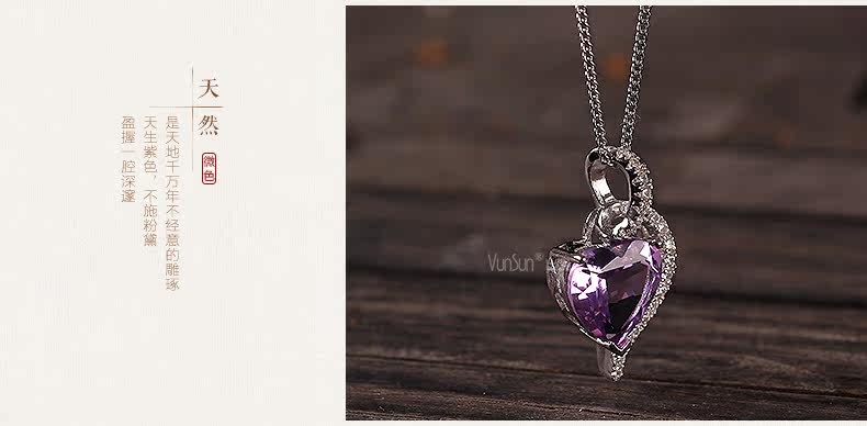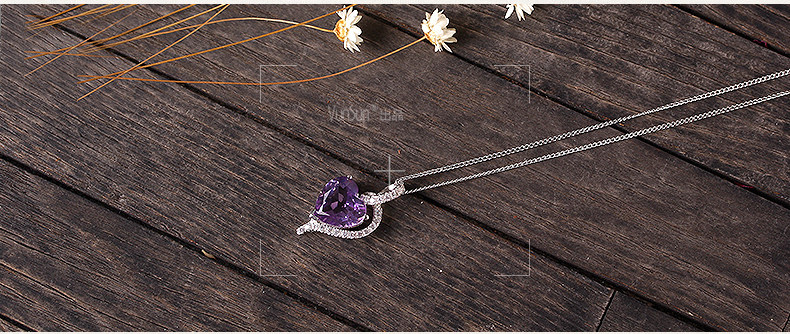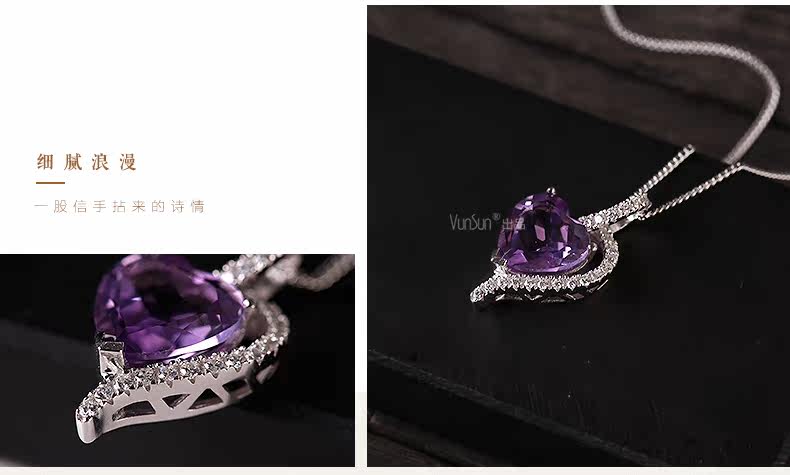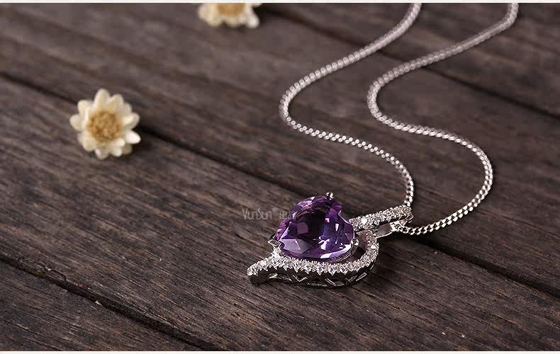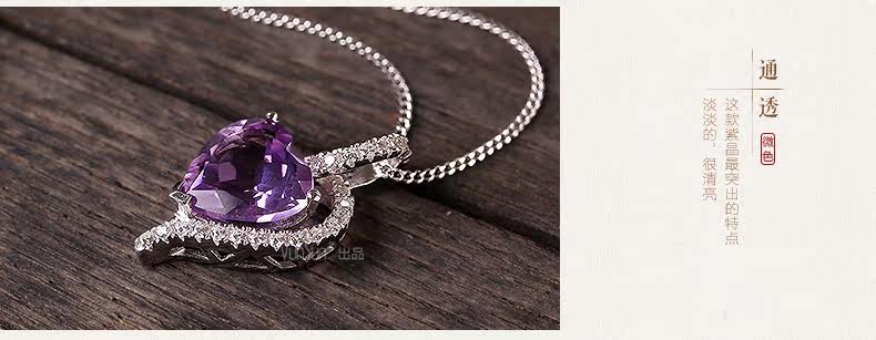 天然水晶项链s925银镶嵌紫水晶心形吊坠女锁骨链 简约 礼物