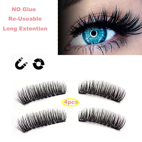 Magnetic Eyelashes Dual Magnet Glue-free 3D Reusable Premium Quality Best False Lashes for Natural Look Makeup (4 Pieces) - 2018