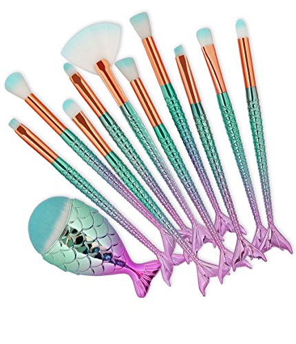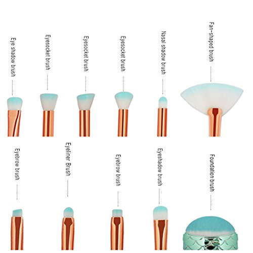 - ❤The hairs made of premium synthetic fiber for a whole new makeup experience, Handle is plastic,cute mermaid, Smooth and easier to make up.High quality and deep cleaning fiber is used for lasting performance, fitting and protecting your sensitive skin.11pcs includes eye shadow brush, eyebrow brush, eyeliner brush, lip brush, blush brush etc. Perfect for applying, shading and blending products