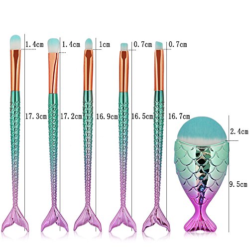 - ❤Popular Mermaid Handles - The handle of these makeup brush set is both made of aluminum tube premium plastic, in mermaid tail shape with 3D fish scale, will give you an incredible touch feeling as well as comfortable to use.