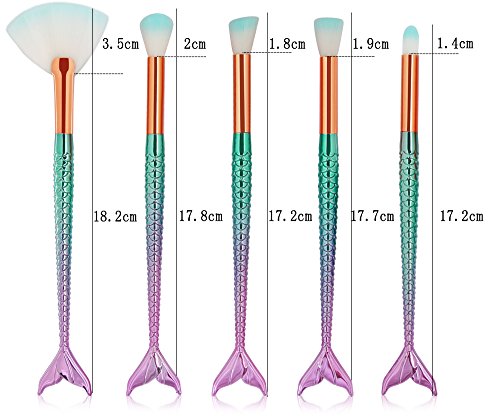 - ❤ Ultra-soft Bristles - This mermaid makeup brushes are made of high density soft nylon bristles, will give you a silky touch feeling. Non-shedding & odour free which is safe for sensitive skin. Easy to clean and dry off fast to keep in clean.