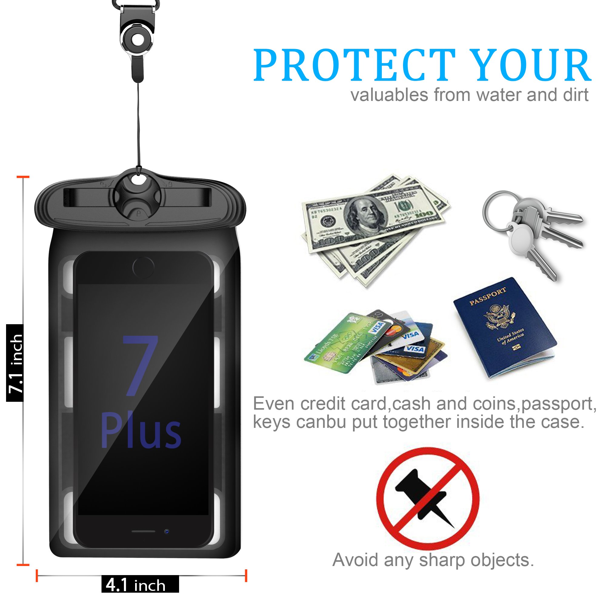 Material: High quality soft vinyl chloride (pvc) Case with dual lock of abdominal muscle and swivel sealable clip
