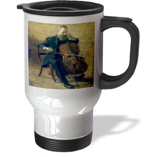 3dRose tm_171340_1 The Cello Player By Thomas Eakins Man Sitting Playing a Cello Travel Mug, 14-Ounce, Stainless Steel
