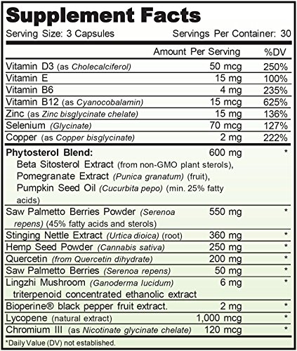 -. Title : Saw Palmetto 600 Prostate Support - Plus Phytosterols for Healthy Urination Frequency, Prevent Hair Loss & Boost Immune System - Natural Supplement w/Phytosterol Blend & Vitamins B6 B12 D3 E - 90 Veg