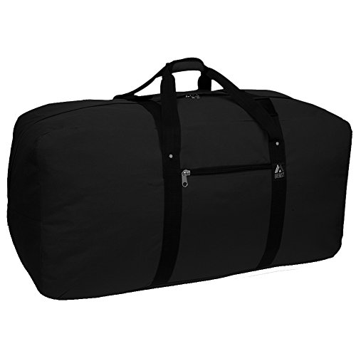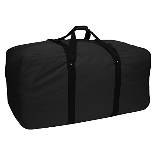 -. Feature : 40" Black Cargo Duffle Bag / Large, Spacious Main Compartment & Small Zippered Front Pocket / Durable 600D Polyester / Ideal For Travel, Camping, Gym, Or Sports / Measures 40" x 20" x 18"