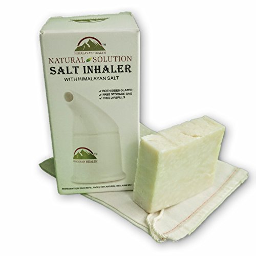 As seen on The Dr.Oz Show and named one of the best new products in Alternative Medicine, this salt inhaler is miraculous for those who suffer with respiratory ailments. The salt inhaler is ceramic glazed inside and out. Comes with a storage bag and two bags of Himalayan Pink Salt 84. You simply inhale salt air through the mouth piece and exhale through nose for 10 to 15 minutes daily. This air will reduce swelling in the nasal passages. If you suffer with asthma, allergies, or high blood pressure this inhaler will help with all of these conditions.