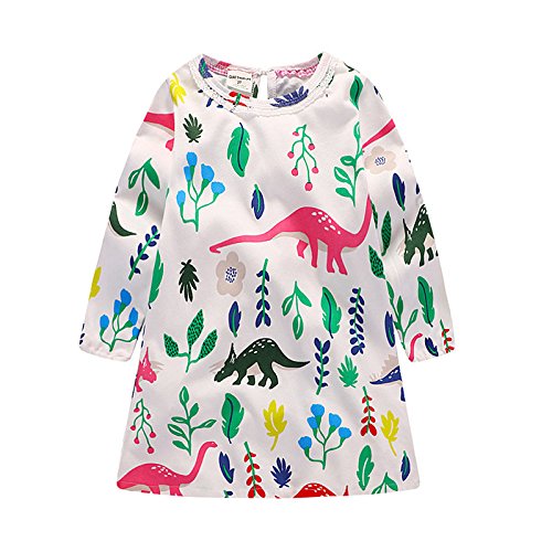 -. Title : ディゾン(dizoon)春秋 綿100% ワンピース 子供 女の子 長袖 パジャマ キッズ 寝巻き チュニック ドレス スカート 白 恐竜 2-7歳