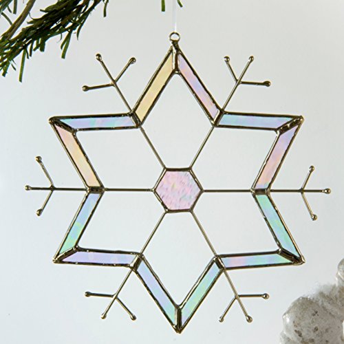 J Devlin Glass Art Orn 188 Iridescent Glass Snowflake Ornament or Window Sun Catcher Winter Christmas Decor