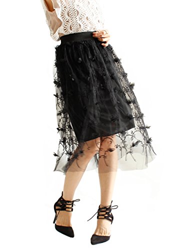 -. Title : (sawa a la mode)サワアラモード レディース Aライン プリーツ シフォン 花柄 刺繍 ロング丈 スカート 体系カバー