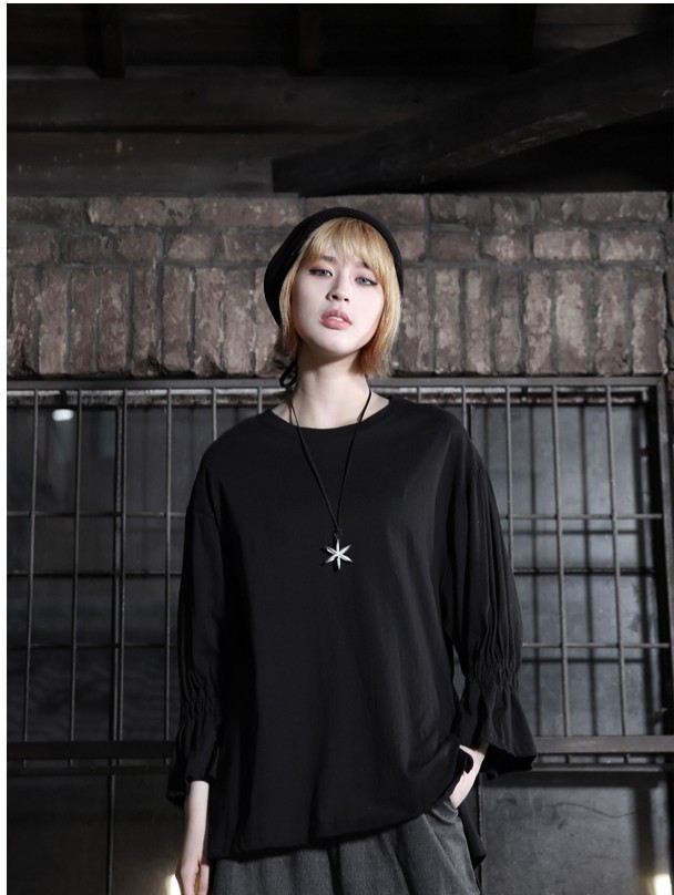 商品名:Tシャツ レディース トップス 無地 長袖 春 2018 モード系 個性的 40代 ファッション