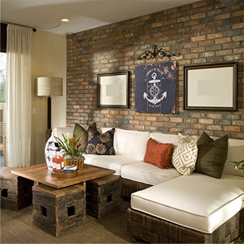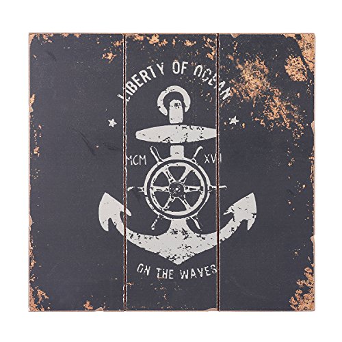 WaaHome Decorative Wall Plaque Sign 11.8''X11.8'' Rustic Wood Square Nautical Wall Signs (Boat Anchor Design)