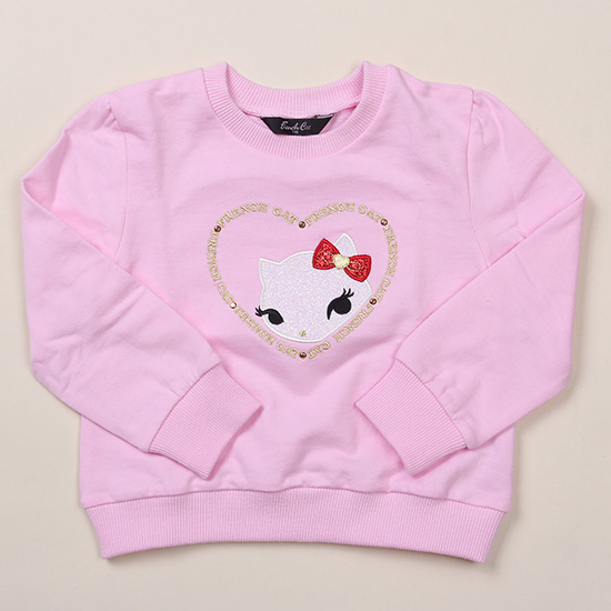 .■상세설명: ;핑크 컬러의 다이마루 소재의 기본 맨투맨 티셔츠 입니다. 하트 속에 쏙 들어간 고양이 포인트로 귀여운 느낌까지 주었습니다.