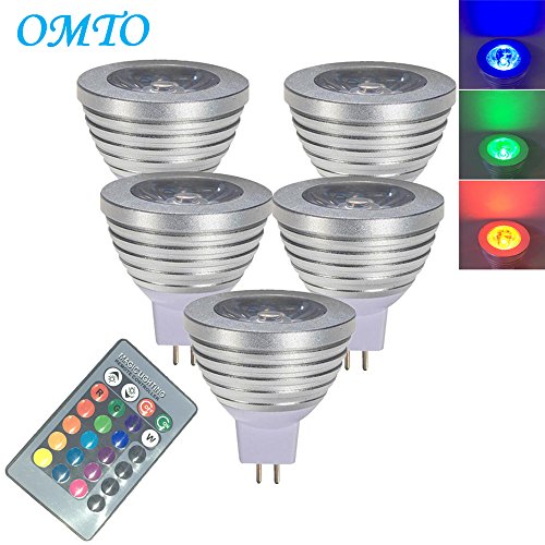 OMTO MR16 3W RGB Color Changing Spotlight with IR Remote Control Mood Ambiance Lighting 16 Color Changing LED Light Bulbs,Dimmable 12V (Pack of 5)