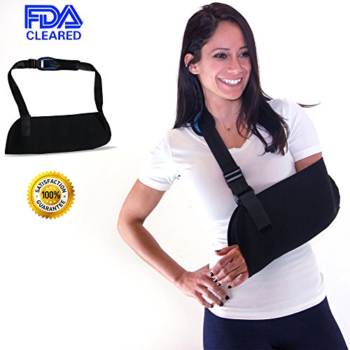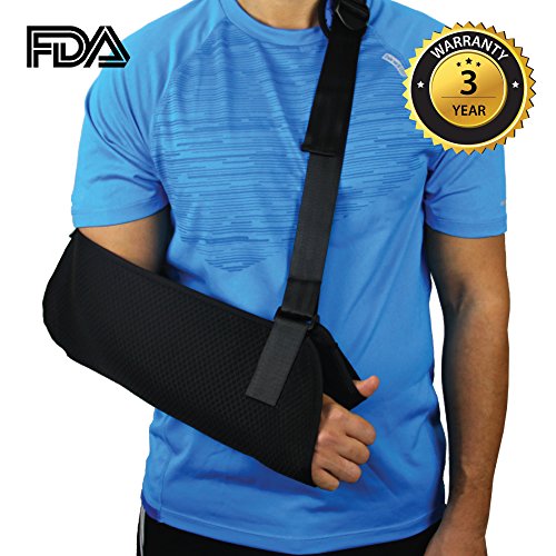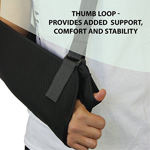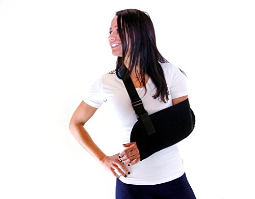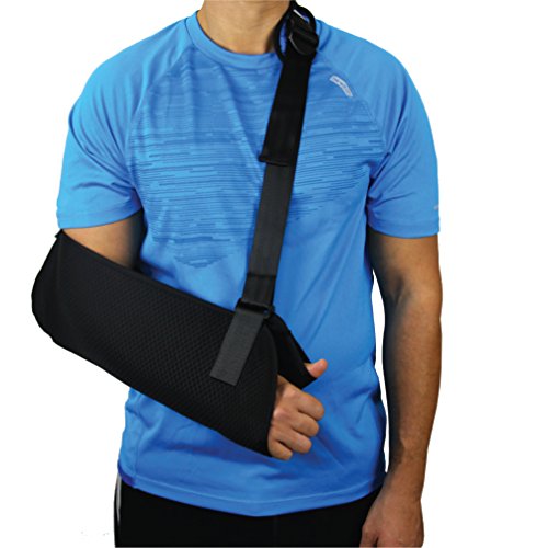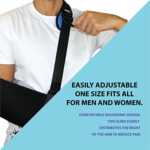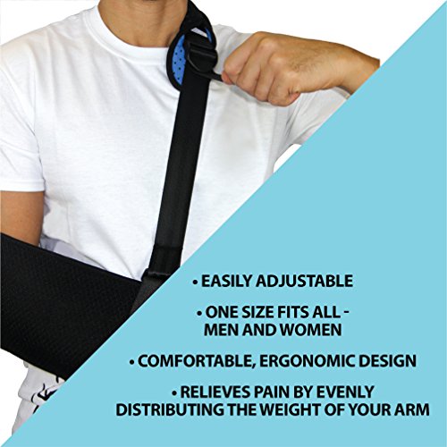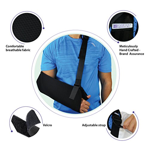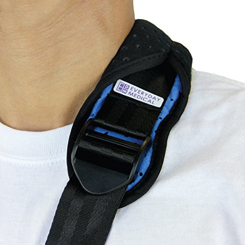 Everyday Medical Arm Shoulder Immobilizer Sling: This shoulder sling immobilizer offers superior standard in comfort, design and quality. The adjustable split strap allows you to distribute weight more evenly than a traditional arm sling support while the cushioned neoprene strap padding conforms to your shoulder for unprecedented comfort. Use of this orthopedic arm sling will help to cushion injured areas and manage pain associated with injuries including: broken arm, elbow, wrist, dislocated shoulder, rotator cuff Injury, and injuries around the finger area or clavicular fractures. A discreet unisex design make this ergonomic sling suitable for use as a: sports arm sling, womens arm sling, pediatric arm sling or shoulder immobilizer for men. Quick List of Features: ★ Ergonomic design ★ Adjustable split strap ★ Durable lightweight ★ Breathable mesh ★ Neoprene padding 0 |