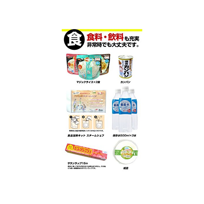 내용량:배낭,다이나《모라지오》(컬러 지정 불가)(라이트,라디오,충전)고, 목장갑,whistle,로프3m,알루미늄 판초,비상용 blanket,급수 탱크3L,보존 수500ml×3개,매직 라이스×3식,캄파니아(Kampaniya)《》,구급 파우치 세트,glue 밍 세트,steam 세프(chef)3회분,지접시,《사란랏푸》15m,포테이프,비상용 슬리핑 백,휴대용 미니 화장실,금은 구출 씨트,방재용 웨트(wet) 티슈,콤팩트 에어 베드,방재 체크 리스트 ※공급 상황 에 따라서는 보존 수,매직 라이스,캄파니아(Kampaniya)《》등 화상인 것과 다른 경우 (이)가 있습니다. 백의 디자인 변경되는 경우가 있기 때문에 미리 양해 바랍니다.