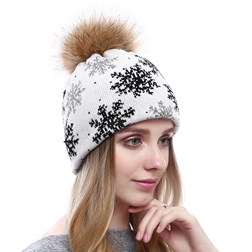 -. Feature : High-end Materials:30% cashmere, 50% acrylic, 20% cotton, fansion rhinestones, fell soft and smooth,comfortable to Wear. / Double design with lining: double lining design keeps your head warm in all situations, no matter if there is snow or cold wind. / Detachablel Pompom:fashion design with fluffy raccoon fur pom pom,around 15-16cm / One Size Fits All: Good flexibility and elasticity, suitable for headband size of 52-60cm. / What You Get:1 knitted cashmere beanie with raccoon fur pompom on top, 1 rex rabbit fur pompoms keychain as a gift and 90 days full warranty.