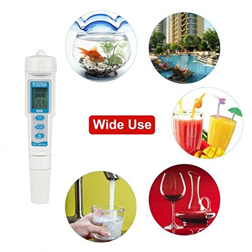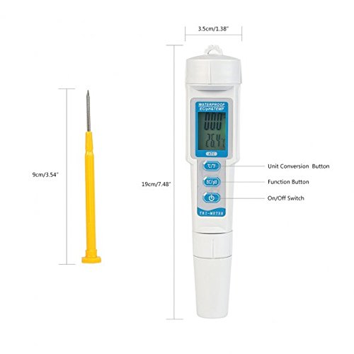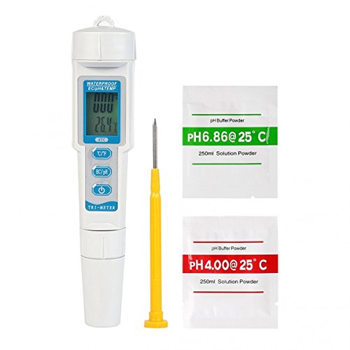 LEANINGTECH 3 in 1 PH Meter EC TEMP TriMeter Pen Type Digital Water Quality Monitor ATC Tester, with Buffer Powder 4.00 and 6.86