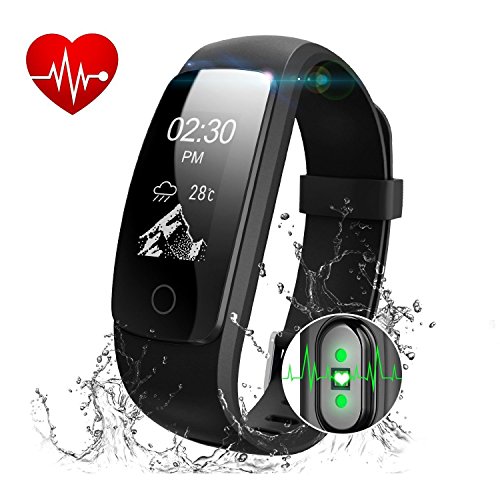 Fitness Tracker Watch HR, Activity Health Tracker with Wristband Heart Rate Monitor, Wireless Pedometer Waterproof Bluetooth Smart Bracelet Band Sleep Monitor for Android IOS Smartphone …