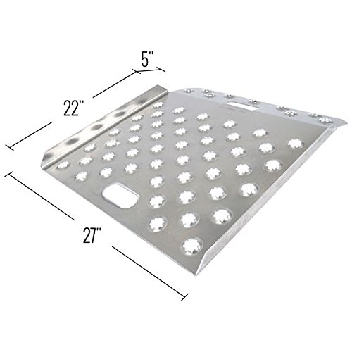 Guardian Industrial portable curb ramp built tough for material handling and shipping dolly carts transitioning to an elevated surface. Each curb ramp features two built-in carrying handles for transporting, raised side rails to help keep dolly carts centered on the ramp, and a built-in attaching lip for a smooth transition from ramp to the elevated curb. An aggressive, large punch-plate, heavy duty traction surface provides maximum grip in any weather condition - Rain, snow, mud or shine! The Guardian Industrial curb ramp is a great solution for moving materials from raised curb surfaces up to 8" high. Maximum 750 lb capacity. Strong all-aluminum construction - Made in the USA. 0 |