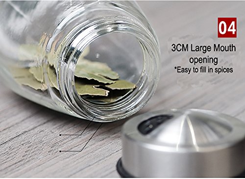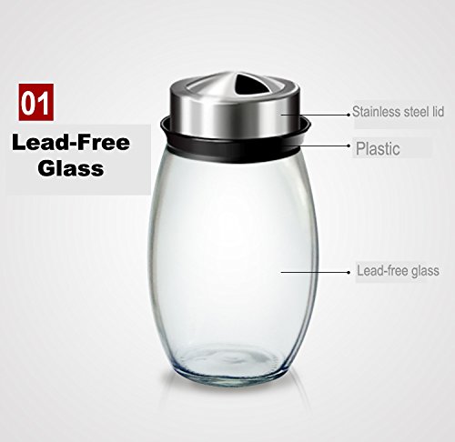 The clear glass jars make it easy to identify contents before you pour on the flavor. All glass jars are airtight and lead-free ensuring all spices are well stored and stay fresh. The jar lids feature 4 mode (available by turning the lid anti-clockwise) opening to help control and pour any desired amount of spices at anytime